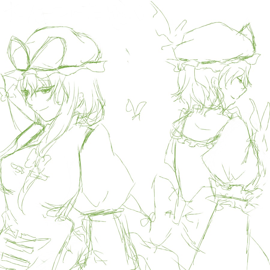 一枚目はなんかゆゆ様の顔が気に食わん。二枚目はゆかりんとゆゆ様と別々で二枚描こうとして途中で飽きた。のでボツです。